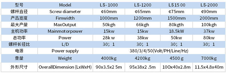 | 螺桿數(shù) | 單螺桿 | 螺桿直徑 | 75(mm) | 最大擠出直徑 | 1600(mm) |